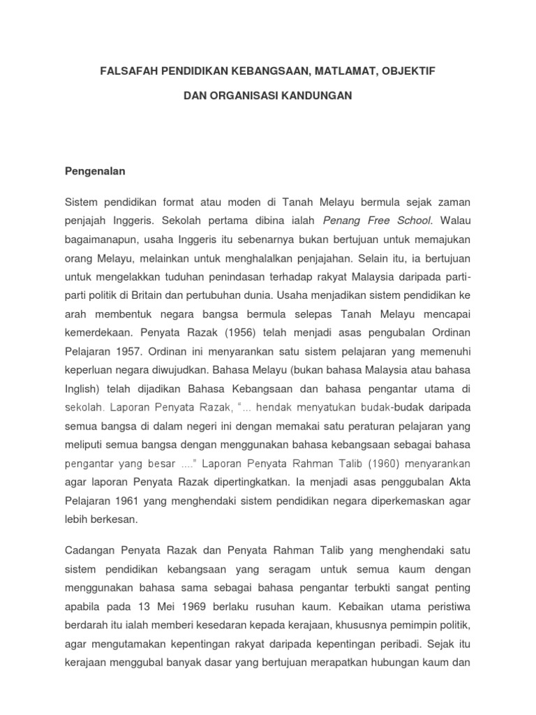 Dasar Pendidikan Kebangsaan from imgv2-2-f.scribdassets.com Ini menjadi satu matlamat penting sistem pendidikan kebangsaan. Kementerian pelajaran malaysia telah menggariskan dasar pendidikan kebangsaan melalui 14 sasaran kerja utama bagi mencapai matlamat wawasan pendidikan. Menyatupadukan rakyat dan menyediakan tenaga kerja mahir yang terdiri daripada pelbagai kaum. Satu matlamat penting sistem pendidikan. Bagaimanakah dasar pendidikan kebangsaan dapat memupuk perpaduan kaum dan intergrasi nasional ? Selepas itu, jawatankuasa kabinet telah ditubuhkan pada 1974 untuk mengkaji. Kurikulum standard sekolah rendah berteraskan falsafah pendidikan kebangsaan dan dasar pendidikan kebangsaan. 17.1.2 matlamat pendidikan islam di sekolah agama kpm adalah untuk membentuk insan seimbang berteraskan kekuatan ilmu, iman dan amal.